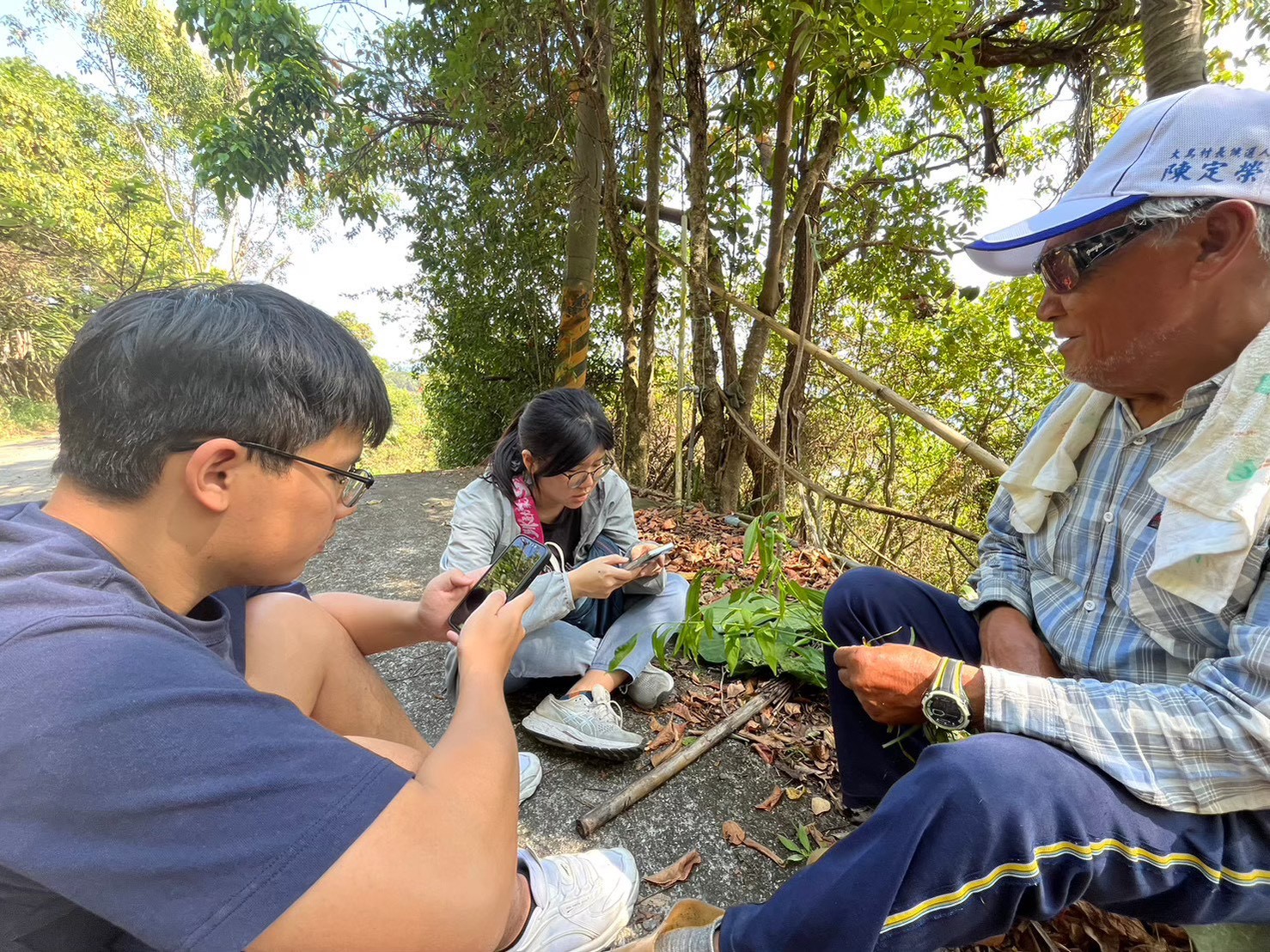 圖1:在據點認識了對植物很了解的vuvu成男,vuvu邀請我跟鎮清、濬瑄一起去他山上的工寮坐坐,順便帶我們認識這裡有的植物。
