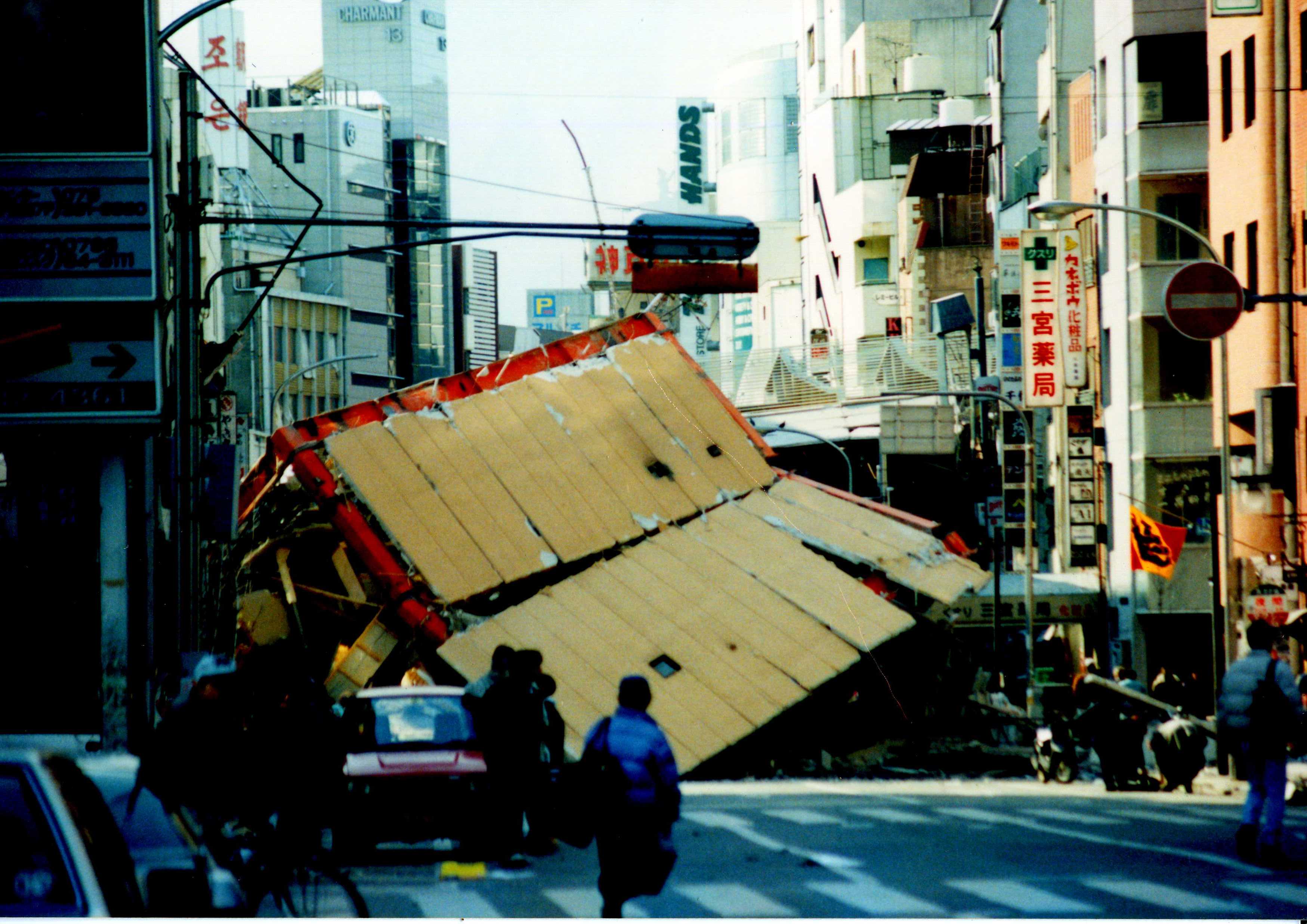 圖:1995年日本阪神淡路大地震(Akiyoshi Matsuoka 松岡明芳攝於1995年1月17日,https://reurl.cc/mkbdLY)