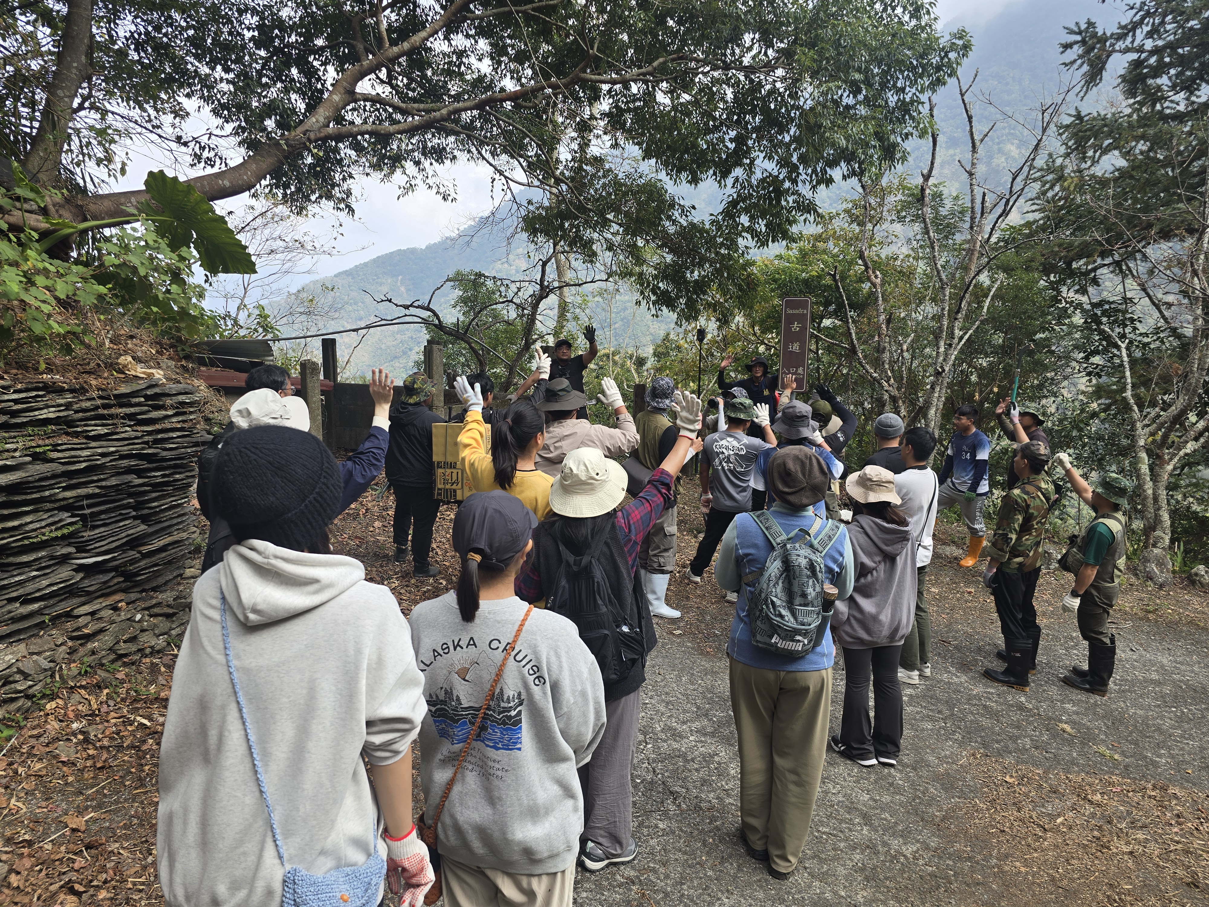 圖二:進入Sasadra古道前,徵求「開拓先鋒」的勇士們