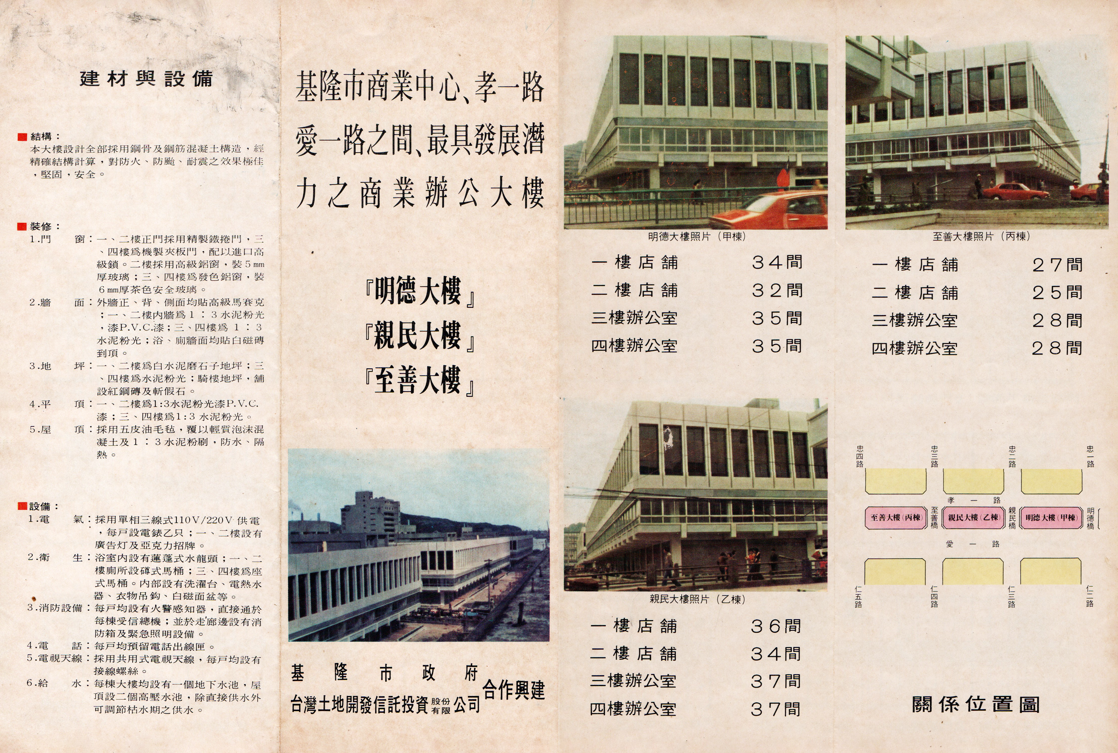 旭川河的疏濬加蓋工程於1978年竣工。在河面加蓋的「蓋子」上,興建了明德、親民、至善三棟四層樓的住商混用大樓,並以聯通道銜接。當時,旅客可由客運站經天橋直接步入能遮風避雨的二樓商場,加上周邊委託行生意興盛,三連棟曾有過十餘年的繁華風光;其下方的崁仔頂魚市,更在夜間發展為北臺灣最大的漁貨集散地。