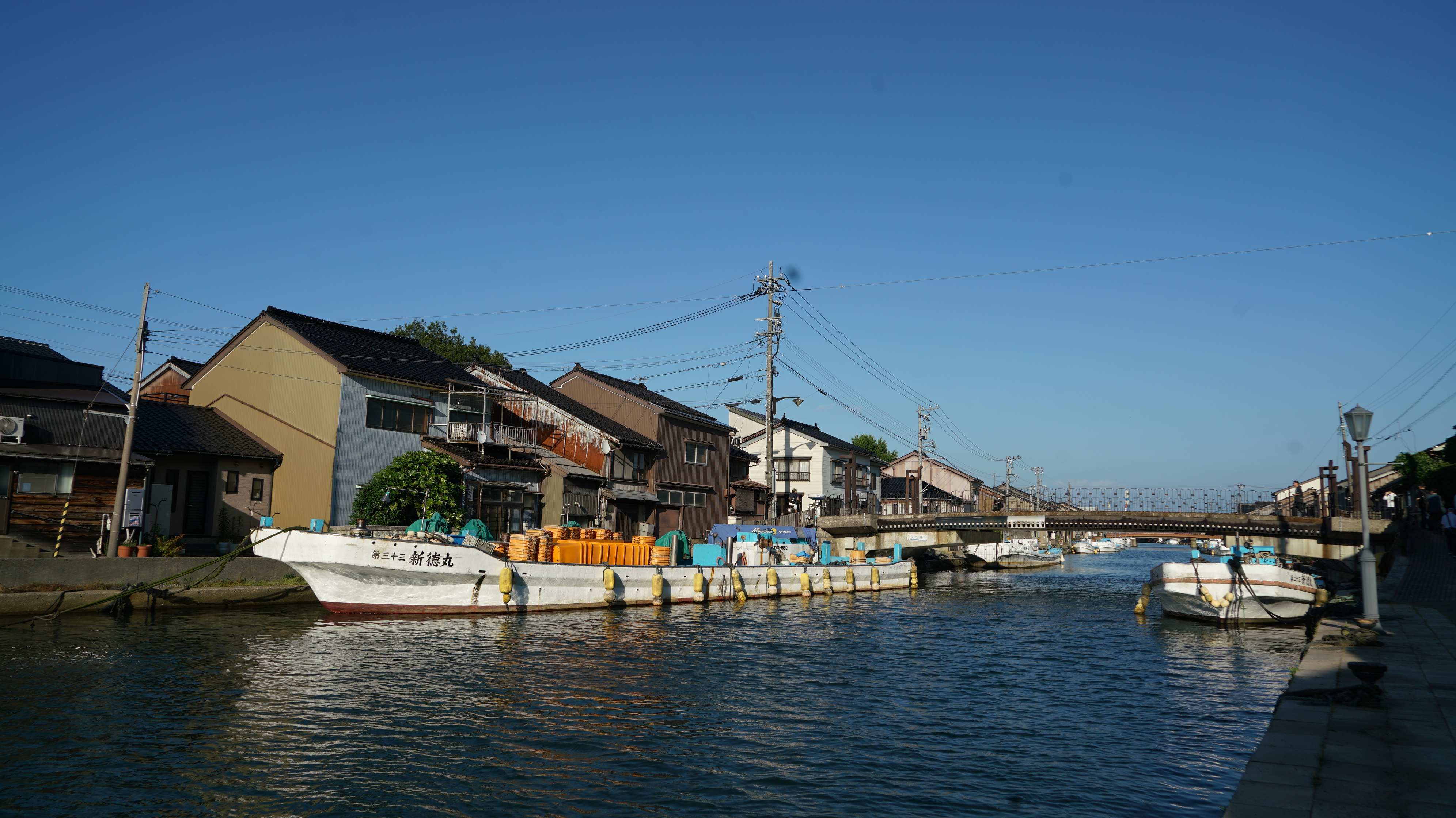 此外,富山縣射水市新湊內川地區自古以漁業為生,內川河貫穿街區,讓北岸的住家與南岸的商店街緊密相對。水面與屋前地面僅相隔約三十公分,船隻可直接停靠,而巷弄則連結起生活與工作空間。昭和時期,婦女在巷內補網、煮飯,巷名與街景一同承載了漁村的歷史記憶。然而,隨著高齡化與人口外流,空屋成為急迫課題,2015年甚至有二、三十棟老屋因安全疑慮遭拆除,漁村的景觀與人際網絡一度中斷。